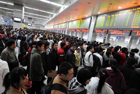 4月2日,大量旅客在南京火車站售票廳排隊(duì)購票。隨著清明節(jié)假期的臨近,南京火車站購票旅客開始增多,車站各售票窗口前均排起長隊(duì),部分旅客為避開假期客流高峰而提前出行。
