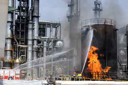 這是消防官兵正在奮力撲救(4月8日攝)。4月8日凌晨4時(shí)30分許,內(nèi)蒙古伊泰集團(tuán)煤間接液化項(xiàng)目基地1號、2號輕質(zhì)油儲(chǔ)油罐發(fā)生火災(zāi)事故,火災(zāi)未造成人員傷亡和關(guān)鍵生產(chǎn)設(shè)備的損毀。截至當(dāng)日16時(shí)10分,明火已被全部撲滅,火勢得到有效控制。