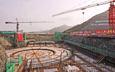 這是浙江三門核電一期工程開工儀式準(zhǔn)備就緒。4月19日,我國首個(gè)第三代核電自主化依托項(xiàng)目——浙江三門核電一期工程開工儀式舉行。據(jù)悉,作為迄今為止中美能源合作建設(shè)的最大項(xiàng)目,三門核電工程采用美國西屋公司開發(fā)的全球最先進(jìn)的第三代先進(jìn)壓水堆核電(AP1000)技術(shù),工程分三期建設(shè),一期工程總投資400多億元,將建設(shè)2臺125萬千瓦級核電機(jī)組,首臺機(jī)組計(jì)劃于2013年建成。 |