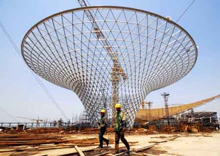 由6個(gè)巨型圓錐狀鋼結(jié)構(gòu)組成的世博軸“陽光谷”,將于今年上半年全部亮相!瓣柟夤取辈捎娩摻Y(jié)構(gòu),讓自然光傾瀉而下,滿足部分地下空間的采光,體現(xiàn)環(huán)保、節(jié)約辦世博的理念。 |
