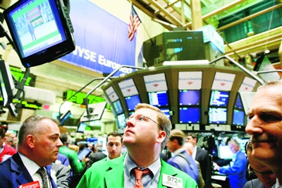 6月1日,股票交易員聚集在美國紐約證券交易所內(nèi)交易通用公司股票的交易亭周圍。由于利好的經(jīng)濟(jì)數(shù)據(jù)令越來越多的投資者相信全球經(jīng)濟(jì)衰退的最嚴(yán)峻時期已經(jīng)過去,1日紐約股市三大股指的漲幅全都超過了2.5%。