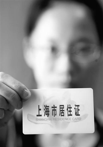6月17日,一名“上海市居住證”持有者展示自己的證件。