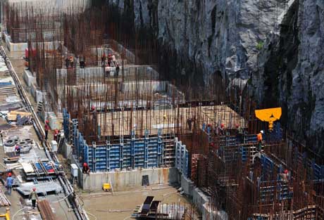 7月16日,工人在對(duì)三峽升船機(jī)塔柱進(jìn)行混凝土澆筑。 日前,三峽升船機(jī)開(kāi)始塔柱混凝土澆筑,標(biāo)志著三峽升船機(jī)主體工程建設(shè)項(xiàng)目進(jìn)入施工階段。三峽升船機(jī)是三峽大壩的船舶快速過(guò)壩通道,由上游引航道、上閘首、船廂室、下閘首和下游引航道組成,過(guò)船規(guī)模為3000噸級(jí),最大垂直升降高度113米。