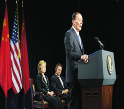 7月27日,中國國家主席胡錦濤特別代表、國務(wù)院副總理王岐山在首輪中美戰(zhàn)略與經(jīng)濟對話開幕式上講話。 當(dāng)日,首輪中美戰(zhàn)略與經(jīng)濟對話在美國華盛頓開幕。