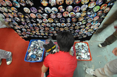 8月12日,在動(dòng)漫電玩節(jié)上,一位市民在挑選動(dòng)漫徽章。