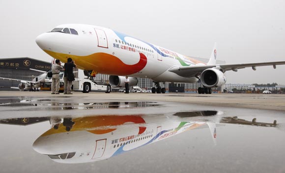 10月12日,“世博志愿者”號(hào)飛機(jī)亮相上海虹橋機(jī)場(chǎng)。當(dāng)日,在2010年上海世博會(huì)開幕倒計(jì)時(shí)200天即將來臨之際,以“服務(wù)世博,奉獻(xiàn)愛心”為主題噴繪而成的“世博志愿者”號(hào)飛機(jī)在上海虹橋機(jī)場(chǎng)亮相。該架飛機(jī)于當(dāng)日17時(shí)執(zhí)行MU5119次航班首航北京,開始為東航京滬航線上的旅客提供世博標(biāo)準(zhǔn)的空中服務(wù)。 |