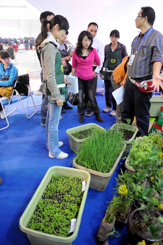 在日前舉行的第十屆中國西部國際博覽會上,觀眾觀看箱式“迷你開心農(nóng)場”。
