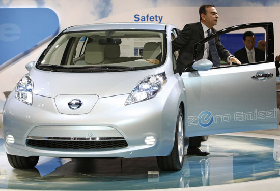10月21日,日本第三大汽車商——日產(chǎn)汽車公司首席執(zhí)行官卡洛斯·戈恩向媒體展示日產(chǎn)公司首款電動(dòng)車“Leaf”。據(jù)介紹,這款將于明年秋季正式上市的電動(dòng)車充電一次可行駛160公里以上,最高時(shí)速可達(dá)140公里。