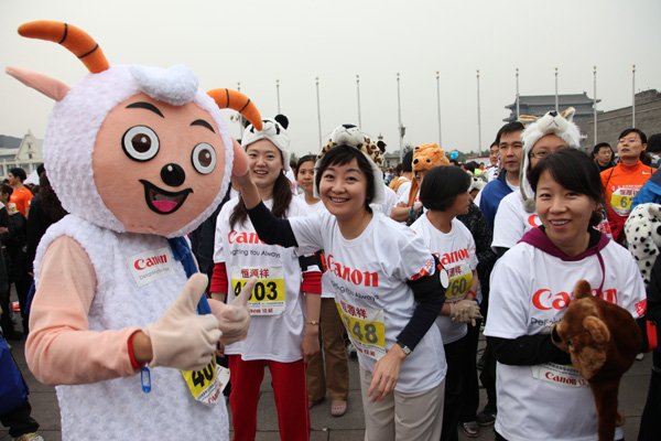 在日前舉行的北京國(guó)際馬拉松賽上,由連續(xù)3年贊助此項(xiàng)賽事的佳能(中國(guó))組織的“跑出彩,迎未來(lái)!”化妝跑團(tuán)隊(duì)頗受關(guān)注。
