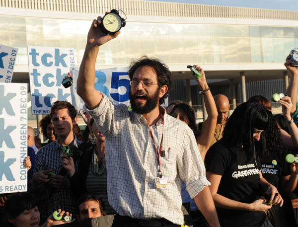 11月2日,在西班牙海濱城市巴塞羅那,環(huán)保人士手持鬧鐘參加“千鐘齊鳴”活動。2009年聯(lián)合國第五次氣候變化談判2日在巴塞羅那開幕。