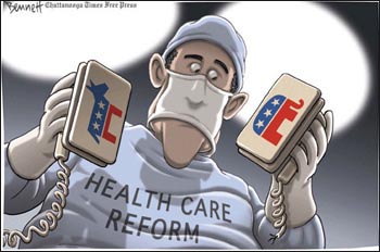 經(jīng)過半年多的論辯與斗爭,美國醫(yī)療改革的“巨輪”終于駛離港口。美國眾議院日前以微弱票數(shù)優(yōu)勢批準(zhǔn)了一份近2000頁的醫(yī)改議案,為奧巴馬政府實(shí)現(xiàn)全民醫(yī)保的設(shè)想打開積極局面。 如今,參議院的方案尚未正式登場,能否獲得綠燈放行也是疑問,因此這艘“巨輪”能否最終抵達(dá)港口,在奧巴馬筆下被簽署成正式法律,目前還屬未知。