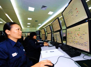 福建煉油乙烯一體化項目中控室的技術(shù)人員正在工作。照片均由本報記者 張國俊