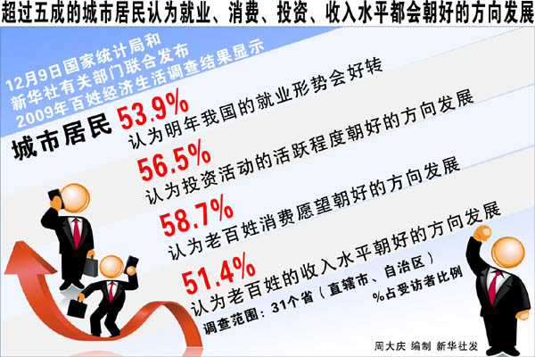 國家統(tǒng)計(jì)局社情民意調(diào)查中心與新華通訊社所屬經(jīng)濟(jì)參考報(bào)、新華網(wǎng)、新聞研究所等單位今年11月聯(lián)合啟動(dòng)“2009年百姓經(jīng)濟(jì)生活調(diào)查”,12月9日正式發(fā)布調(diào)查結(jié)果。 此次調(diào)查由三部分組成,分別是國家統(tǒng)計(jì)局社情民意調(diào)查中心受新華社委托進(jìn)行的電話調(diào)查,新華社31個(gè)分社在所在省區(qū)市圍繞城鄉(xiāng)百姓經(jīng)濟(jì)生活熱點(diǎn)進(jìn)行的入戶訪問,以及在新華網(wǎng)上開展的網(wǎng)民調(diào)查。內(nèi)容涉及對(duì)金融危機(jī)的知曉度、對(duì)金融危機(jī)影響的感受、對(duì)金融危機(jī)應(yīng)對(duì)措施的認(rèn)知和對(duì)未來經(jīng)濟(jì)走勢的判斷等。(詳見今日二、六、七版) |