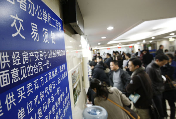 12月10日,上海徐匯區(qū)房地產(chǎn)交易中心交易大廳內(nèi)人頭攢動(dòng)。 隨著二手房營業(yè)稅優(yōu)惠政策即將到期,上海各區(qū)縣房地產(chǎn)交易中心交易量明顯增加。12月9日,國務(wù)院常務(wù)會(huì)議決定個(gè)人住房轉(zhuǎn)讓營業(yè)稅征免時(shí)限由2年恢復(fù)到5年,買賣雙方為了節(jié)省“2變5”之后多花的5.5%的稅費(fèi)成本,紛紛趕在年底之前完成交易。