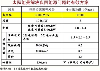 我國陸地表面每年接受太陽能輻射相當于49000億噸標準煤,全國2/3的國土面積日照在2200小時以上。如果將這些太陽能全都用于發(fā)電,約等于上萬個三峽工程發(fā)電量的總和。豐富的太陽能資源,是中華民族賴以生存、永續(xù)繁衍的一筆最寶貴的財富。 |
