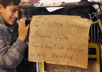 12月23日,在西班牙首都馬德里的巴拉哈斯機場,一名因彗星航空公司突然宣布倒閉而滯留機場的小乘客在行李車旁哭泣。西班牙彗星航空公司因無法償還其債務21日突然宣布倒閉,其640名員工全部失業(yè),所有航班停運,導致大量旅客滯留機場。彗星航空公司是一家私人公司,成立于1996年,除了西班牙境內的包機服務之外,業(yè)務范圍主要覆蓋從馬德里到拉美國家的航線。新華社/法新