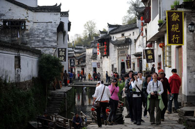4月5日,游客在江西婺源李坑景區(qū)游覽觀光。 今年清明小長假,江西旅行社接待人數(shù)同比增長三成。其中,婺源——景德鎮(zhèn)兩日游最受游客青睞。3天清明假期,婺源共接待游客近30萬人次。
