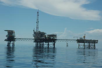 4月19日上午8時(shí),巡航執(zhí)法編隊(duì)抵達(dá)彈丸礁。該礁于1979年被馬來西亞占領(lǐng)。1994年,馬來西亞宣布在礁上開發(fā)旅游,建設(shè)機(jī)場(chǎng),每年吸引大量游客。還沒來得及仔細(xì)觀察這一島礁,我就聽到馬來西亞海軍的高頻喊話。我方則明確宣示:“我們是中華人民共和國海監(jiān)執(zhí)法船,正在中華人民共和國管轄海域定期巡航執(zhí)法! 19日下午,馬來西亞出動(dòng)一艘軍艦跟蹤我船約40分鐘并不停喊話,說什么我們已經(jīng)進(jìn)入馬來西亞管轄海域,須立即離開。該軍艦還企圖同我船并駕齊驅(qū),強(qiáng)迫我們離開該區(qū)域。但我們態(tài)度堅(jiān)決,明確告訴對(duì)方這是中國管轄海域,加之我海監(jiān)船體形較大,對(duì)方不敢貿(mào)然靠近,最后只好放棄跟蹤。 晚10時(shí),我們慢慢駛近馬來西亞在南康暗沙的油氣田。只見10來個(gè)鉆井平臺(tái)呈圓弧形分布,綿延一二十海里,聳立在我南海海域,每座平臺(tái)都燈火輝煌,猶如一座座海上宮殿,十分扎眼。