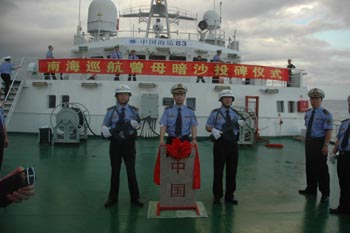 隨著南海南部豐富的油氣資源的發(fā)現(xiàn)和戰(zhàn)略地位的凸顯,特別是1982年《聯(lián)合國海洋法公約》的制定,周邊國家紛紛染指。當(dāng)前,我國在南海的海洋權(quán)益受到了巨大挑戰(zhàn),其中爭議最大、形勢(shì)最為嚴(yán)峻的就是南沙群島及其附近海域。 中國海監(jiān)83船的同志們說,在南海投放主權(quán)碑是中國海監(jiān)巡航執(zhí)法、宣示主權(quán)、展示存在的最重要方式之一。
