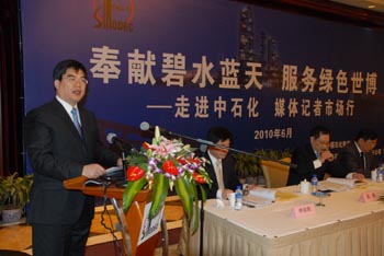在上海舉辦的“走進(jìn)中石化媒體記者市場行”活動(dòng)中,中國石化集團(tuán)公司新聞發(fā)言人、股份公司董秘局辦公室主任黃文生表示:“‘奉獻(xiàn)碧水藍(lán)天,服務(wù)綠色世博’,這是中國石化對上海世博會(huì)作出的承諾!崩钚旅