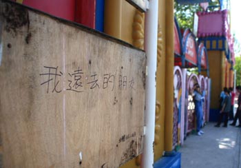停業(yè)的北京游樂園門口多處都有游客留言 |
