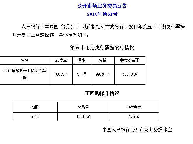 據(jù)中國人民銀行網(wǎng)站消息,人民銀行今日發(fā)行了今年第五十七期央行票據(jù),并開展了正回購操作。公告如下: