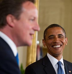 7月20日,在美國(guó)首都華盛頓白宮,美國(guó)總統(tǒng)奧巴馬(右)與到訪的英國(guó)首相卡梅倫會(huì)談后出席聯(lián)合新聞發(fā)布會(huì)。 最近,英國(guó)石油公司由于墨西哥灣漏油事件以及被懷疑就釋放洛克比空難制造者進(jìn)行游說(shuō)而飽受美國(guó)朝野批評(píng),卡梅倫試圖借此次訪問(wèn)平息這一重要盟友的憤怒。