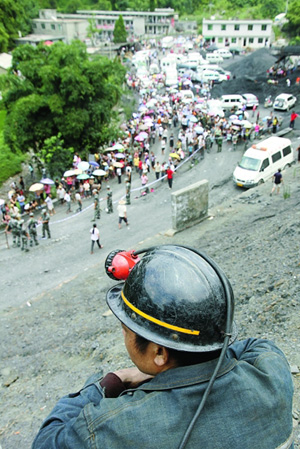 8月3日,一名礦工在貴州仁懷市長崗鎮(zhèn)明陽煤礦等待同伴的消息。貴州省仁懷市長崗鎮(zhèn)明陽煤礦3日發(fā)生一起煤與瓦斯突出事故,截至20時,已發(fā)現(xiàn)15名遇難人員遺體。