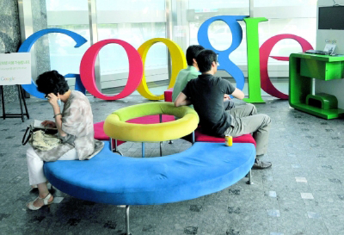 8月11日,在韓國首都首爾,來訪者坐在谷歌韓國的辦公室大堂內(nèi)。 韓國警方10日對涉嫌收集個人信息的谷歌韓國的辦公室進行了搜查,獲取了硬盤文件等材料。警方有關(guān)人士表示:“谷歌韓國在制作‘街景’程序的過程中,非法收集個人信息,涉嫌違背通信秘密保護法,所以申請了搜查證,獲準進行了搜查。”谷歌韓國的代表當天就警方的搜查行動向韓國媒體表示:“從未非法使用收集到的個人信息!