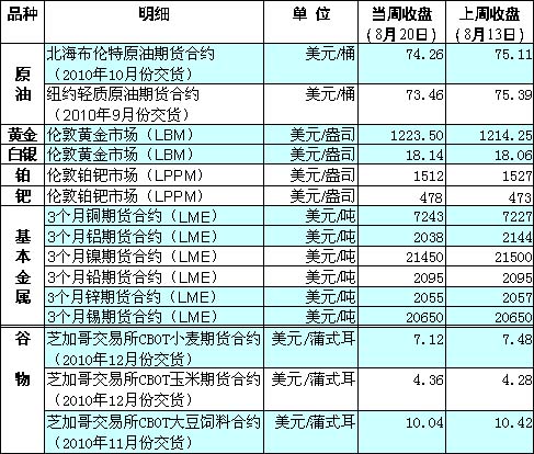 近期以小麥為代表長勢兇猛的谷物期貨價(jià)格當(dāng)周小幅回調(diào),國際油價(jià)震蕩下行。美國農(nóng)業(yè)部20日宣布向未知目的地售出16.5萬噸硬紅冬小麥,略微提振小麥期價(jià),但高于預(yù)期的加拿大小麥產(chǎn)量以及俄羅斯否認(rèn)糧食進(jìn)口傳言令市場心理承壓,遏制了小麥近期醞釀的新一輪漲勢。 有分析人士指出,小麥期價(jià)面臨的賣盤壓力不大,而近期價(jià)格連續(xù)回調(diào)引發(fā)空頭回補(bǔ),支撐小麥期價(jià)小幅反彈。自今年6月份以來,隨著俄羅斯等全球小麥出口國接連遭遇極端惡劣天氣,市場對全球小麥供應(yīng)量的關(guān)注驟然加劇,加上國際投機(jī)力量大肆炒作,國際大宗商品市場小麥期貨價(jià)格7月份創(chuàng)下37年以來最大單月漲幅。 受美國股市下跌和美元走高影響,投資者操作謹(jǐn)慎,市場交易清淡,對大宗商品形成壓力。當(dāng)周國際油價(jià)顯現(xiàn)跌勢,周中最后一個(gè)交易日紐約商品交易所9月份交貨的輕質(zhì)原油期貨價(jià)格盤中最低跌至每桶73.19美元,是6周以來最低交易價(jià)格。 受美國失業(yè)數(shù)據(jù)不及預(yù)期等消息影響,當(dāng)周市場對全球經(jīng)濟(jì)復(fù)蘇勢頭趨緩的憂慮加深,令黃金市場上的避險(xiǎn)買盤不斷涌現(xiàn),周中金價(jià)一度觸及每盎司1239.5美元的7月1日以來主力合約的高點(diǎn)。另外,隨著24日印度兄妹節(jié)的臨近,印度將迎來傳統(tǒng)黃金消費(fèi)旺季,近期珠寶商提前采購黃金補(bǔ)充庫存,支撐黃金期價(jià)本周累計(jì)上漲1%,為連續(xù)第三周保持漲勢。