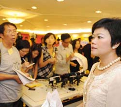 8月24日,康泰旅行社總經(jīng)理劉美詩(右)出席記者會。 當(dāng)日中午,香港康泰旅行社召開記者會介紹,受菲律賓人質(zhì)劫持事件影響的香港旅行團成員大部分通過旅行社購買了保險,保險公司將按照特殊情況處理,對每名遇害者按照最高額度100萬港元進行理賠,傷者醫(yī)療費用最高也可至100萬港元。新華社發(fā)