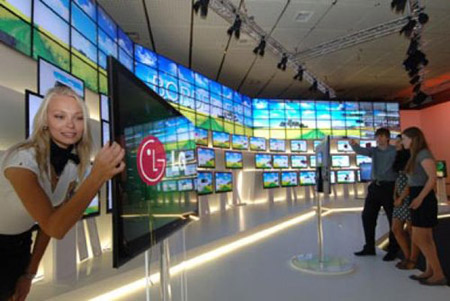 除3D技術(shù)外,過去幾年IFA上,超薄電視機(jī)一直都是展覽的熱點(diǎn)。當(dāng)電視廠商將電視機(jī)的屏幕尺寸突破100英寸之后,他們開始轉(zhuǎn)而關(guān)注電視的厚度。在這張照片中,一名模特正在展示一款LG超薄電視。