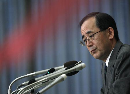 10月28日,在日本首都東京,日本銀行行長白川方明出席新聞發(fā)布會(huì)。 日本中央銀行——日本銀行28日發(fā)表《經(jīng)濟(jì)物價(jià)形勢展望報(bào)告》,對2010財(cái)年和2011財(cái)年日本經(jīng)濟(jì)增長率的預(yù)期均有所下調(diào),消費(fèi)者物價(jià)指數(shù)則有望在2011財(cái)年轉(zhuǎn)為正增長。
