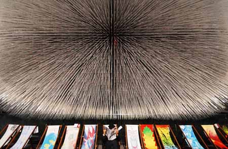 10月28日,游客在世博園英國(guó)館的裝有種子的亞克力“觸須”前休息。 當(dāng)日,承載了6萬(wàn)多顆“種子”的上海世博會(huì)英國(guó)館“觸須”正式開(kāi)始在網(wǎng)上拍賣,所得款項(xiàng)將全部用于慈善事業(yè)。據(jù)悉,英國(guó)館將于11月1日正式拆館。