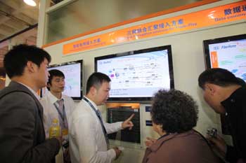 10月12日,在北京舉行的國際信息通信展覽會(huì)上,工作人員向觀眾介紹“三網(wǎng)融合”系統(tǒng)。目前艱難推進(jìn)的三網(wǎng)融合期待實(shí)質(zhì)性的破冰之舉。新華社 陳曉根/攝 |