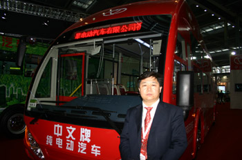 日前在深圳召開的第25屆世界電動車大會上,來自山東沂蒙老區(qū)的沂星電動汽車有限公司,攜多輛純電動客車參展,成為展會上的一大亮點,中央政治局委員汪洋、全國政協(xié)副主席、科技部部長萬鋼等紛紛在展臺前駐足觀看。公司總裁賈秉成興奮地說:“只要是真正的節(jié)能環(huán)保產品,就一定會受到明星般的追捧。”展會現(xiàn)場,他愉快地接受了新華社《經濟參考報》記者的專訪。