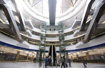 3月12日,施工人員正在對將要投入使用的上海虹橋交通樞紐的內(nèi)部設(shè)施進(jìn)行調(diào)試。記者 裴鑫/攝 |
