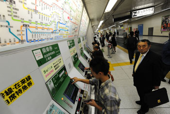 東京車站,乘客在自助購買車票。四通八達(dá)的軌道交通是日本人平時(shí)出行的首選。記者 季春鵬/攝 |