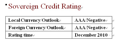 analysis of such factors as its lower government debt burden and fiscal deficit,