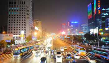 夜晚光彩熠熠,車水馬龍的中關(guān)村。 |