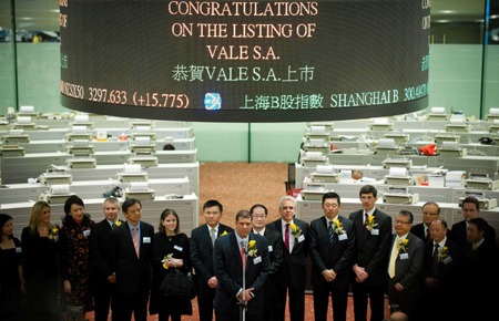 當(dāng)日,世界最大的鐵礦石生產(chǎn)商巴西淡水河谷公司以介紹方式在香港實(shí)現(xiàn)第二上市,這是2008年香港交易所出臺(tái)有關(guān)市場(chǎng)措施后首個(gè)在港推出預(yù)托證券的公司。分析師表示,淡水河谷此次發(fā)行預(yù)托債券對(duì)于香港來說是一次全新的嘗試,將促進(jìn)香港作為國際金融中心的地位。