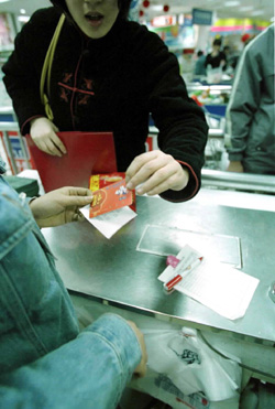 從宣武門地鐵站出來往南走300米有一個大型國際品牌超市,這300米內(nèi)布滿了收集各類購物卡的人群,他們手里的各類購物卡連成一長串,口中叫著“收卡收卡”,《經(jīng)濟參考報》記者以要出售該大型超市的1000元購物卡為由暗訪了數(shù)位在此多年的“黃牛”。