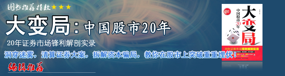 | 作者筆下豐富的案例既是最受老百姓關(guān)注的典型標本,也是中國證券業(yè)和中國上市公司目前最尖銳最具參考性的素材庫,具備話題價值和參考意義。 |