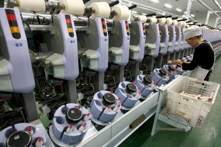 12月13日,在山西省運(yùn)城市轉(zhuǎn)型發(fā)展和產(chǎn)業(yè)結(jié)構(gòu)調(diào)整中興建的山西華雄紡織有限公司內(nèi),工人在生產(chǎn)車間工作。