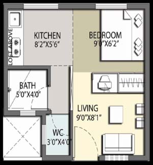圖為塔塔住房開發(fā)公司“幸運之家”項目網(wǎng)站上公布的建筑面積為26.3平方米的零居室戶型圖。 |