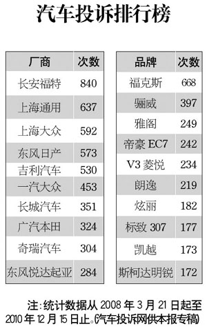 · 汽車投訴排行榜[2010-11-11] 2010-11-11