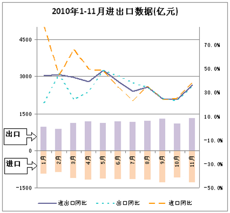 前不久,海關(guān)總署也公布了一組讓人振奮的數(shù)據(jù):11月中國(guó)的進(jìn)出口均創(chuàng)歷史新高,今年1至11月,我國(guó)進(jìn)出口總值26772.8億美元,比去年同期增長(zhǎng)36.3%。已超過(guò)去年全年22073億美元的水平。
