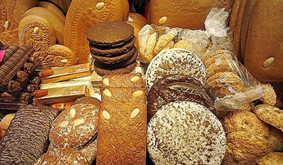 德國(guó)最著名的圣誕食品是姜餅Lebkuchen。這是是一種介乎于蛋糕與餅干之間的小點(diǎn)。傳統(tǒng)的姜餅,以蜂蜜、胡椒粒為材料,又甜又辣,口感刺激,F(xiàn)在的姜餅都經(jīng)過(guò)改良,外面灑上一層糖霜,不但口感豐富,外型也相當(dāng)討好。