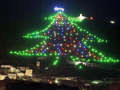 吉尼斯世界紀(jì)錄中,世界上最大的圣誕樹位于意大利小鎮(zhèn)古比奧。這棵高650米的圣誕樹沒有針葉,它其實(shí)是一座無數(shù)燈泡妝點(diǎn)起來的小山峰。