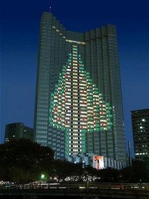 在日本東京的赤阪王子飯店,有一顆由燈光構(gòu)成的100米高的圣誕樹。